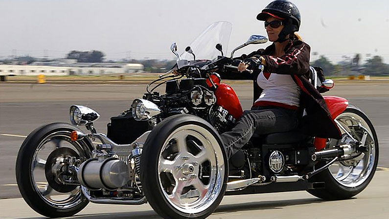 The ’34 Roadstercycle® Trike uses a Fuel injected Yamaha V-Max engine. It has four separate pod type air filters sitting on top of stock V-max CV carbs modified into fuel injected throttle bodies. With a Nascar style exhaust the ’34 is an awesome machine, the wildest Roadstercycle ever built. Tons of power, great cornering, and just a blast to ride. It really gives it a sound all it's own.